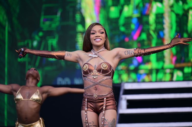 GloRilla performing onstage at the 2023 Coachella Valley Music & Arts Festival.